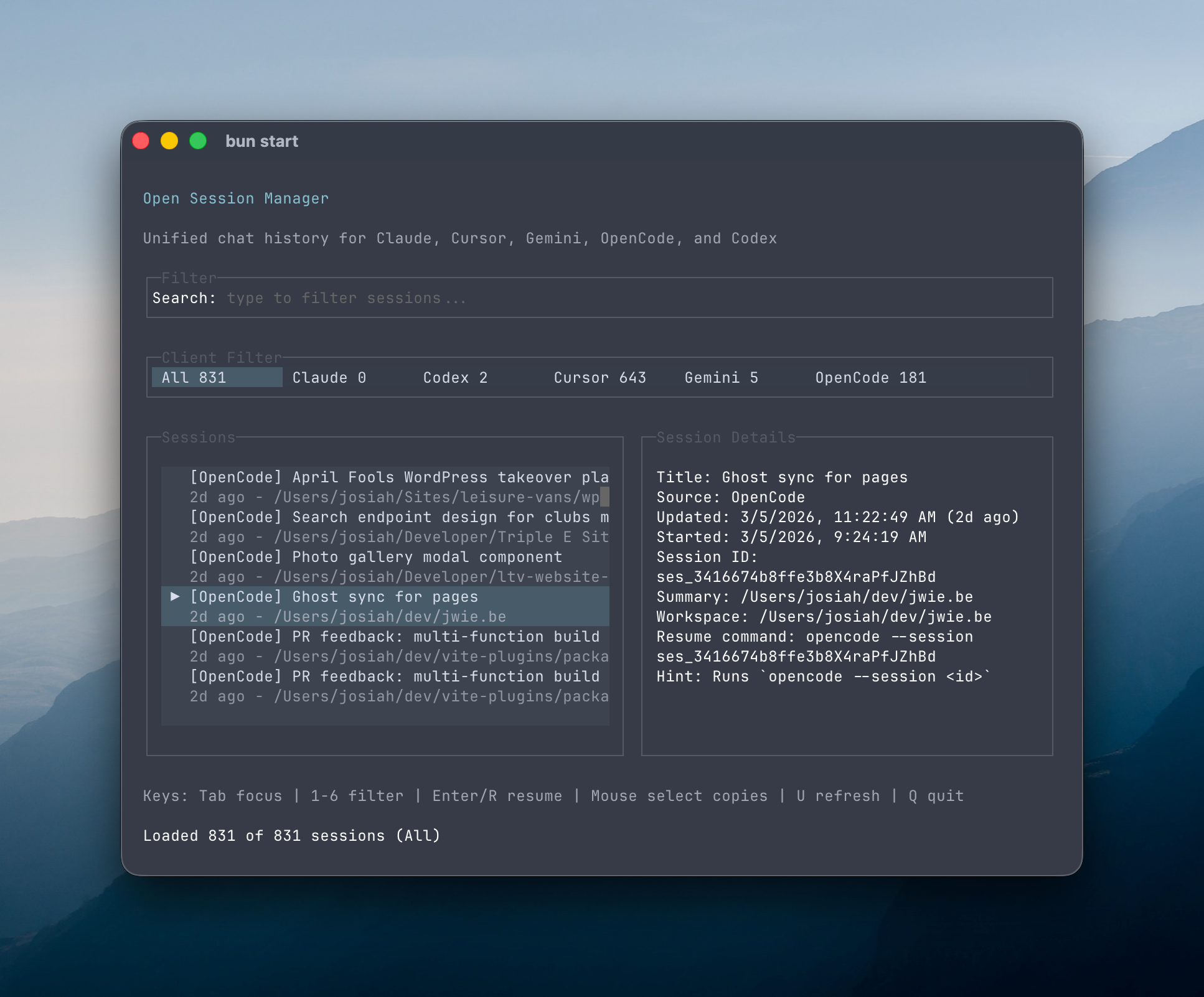 So I built opensession – a simple TUI for managing your past chat sessions – making it easy to recall a session and jump right back in.