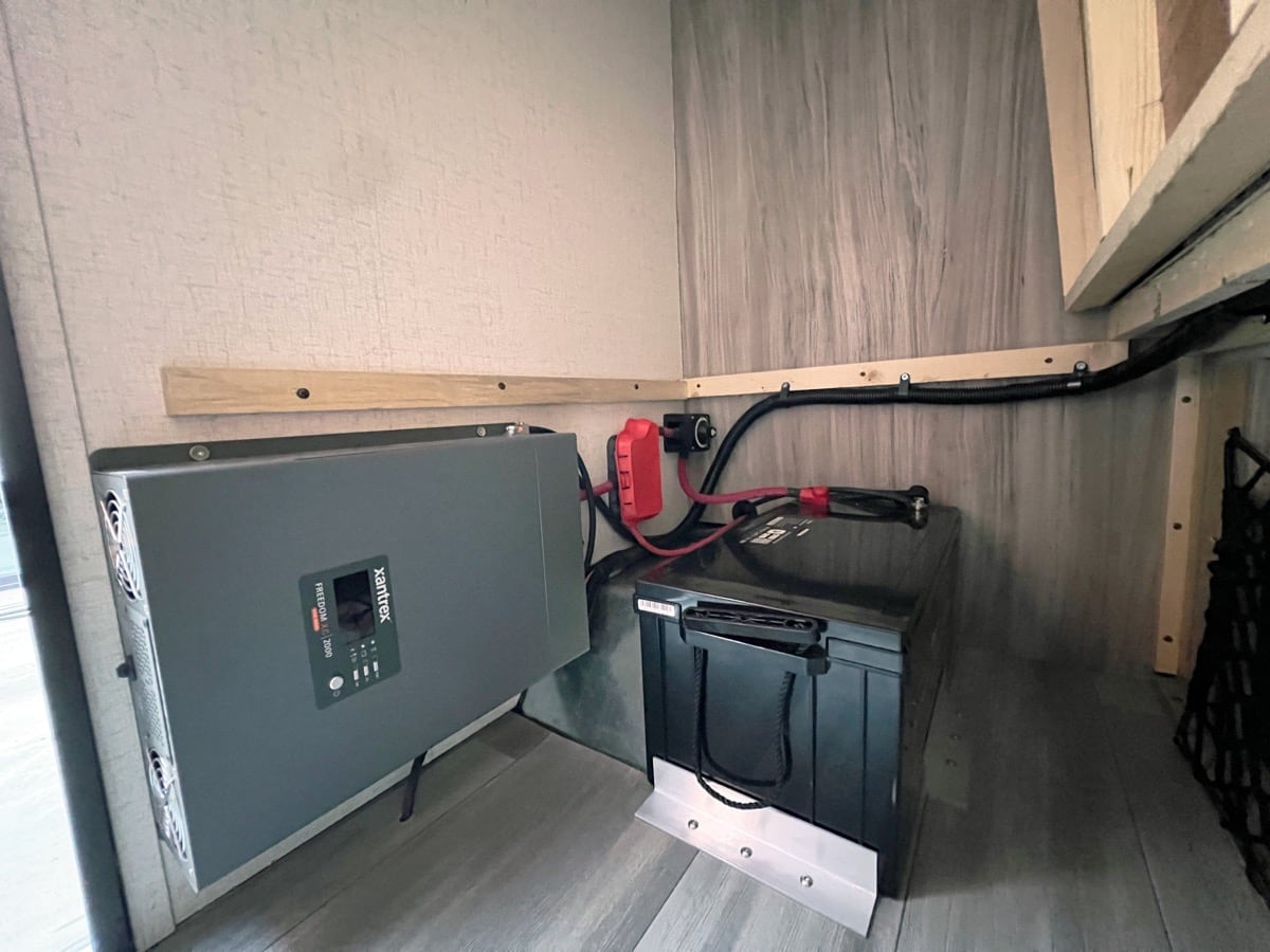 Dry mounted the inverter and battery in the rear storage compartment. With the help of my very knowledgeable coworker Brian, we sketched out a few scenarios and landed on this one.